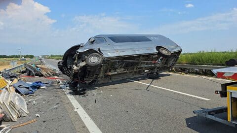 Szeged irányába haladt a zsúfolásig megrakott utánfutót húzó román kisbusz, amikor a hátsó kereke defektet kapott. A jármű irányíthatatlanná vált, vezetője pedig elveszítette uralmát a jármű felett és a belső sávba sodródott, ahol a szalagkorlátnak csapódott, majd a sztrádán keresztbe fordulva, az oldalán állt meg.